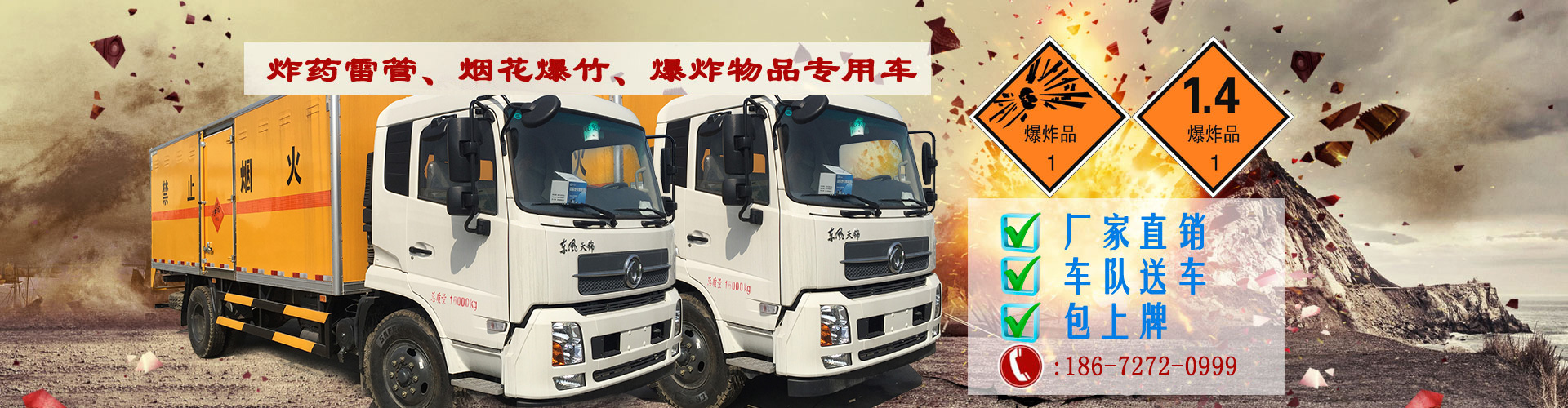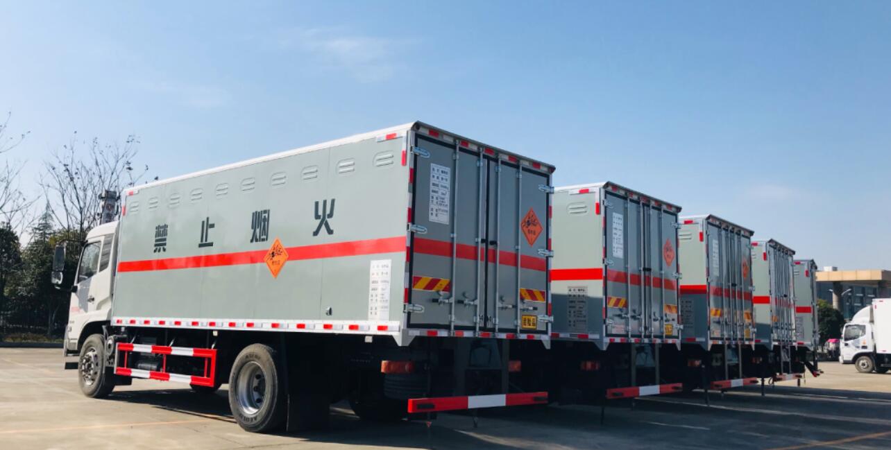 陜西危險(xiǎn)品運(yùn)輸公司一次性在我司購買10臺10噸東風(fēng)天錦炸藥運(yùn)輸車,東風(fēng)天錦10噸炸藥運(yùn)輸車運(yùn)輸獨(dú)立容器(瓶)包裝的貨物;EX/Ⅲ型車輛;危險(xiǎn)貨物類項(xiàng)號:1.1 D,1.1B,1.1G ,1.1C,1.3C,1.4G