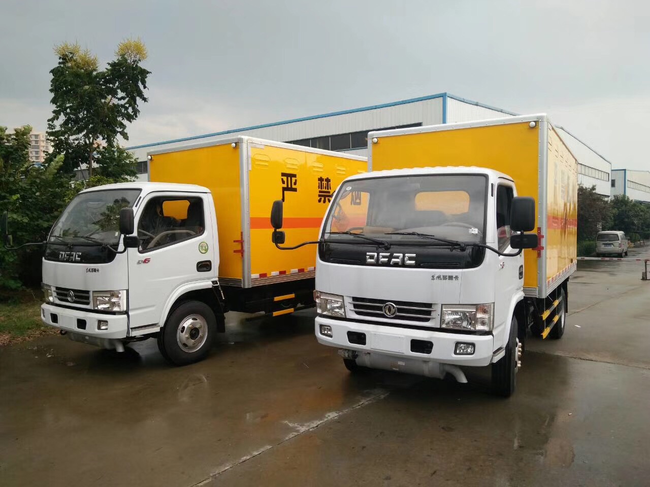 東風4噸民爆炸藥運輸車專用功能及裝置:專用裝置為廂體。該車適用于運輸危險品;運輸獨立容器(瓶)包裝的貨物;EX/Ⅲ型車輛;危險貨物類項號:1.1 D,1.1 D,1.1B,1.1B,1.1G ,1.1C,1.3C,1.1 D,1.1 D,1.4G,1.1D,1.1 D,1.1B,1.1B,1.3C,1.1C,1.3C,1.1D;其他說明:該車僅使用排氣管前置,前輪為盤式制動器底盤,僅使用子午線輪胎,轉向輪安裝爆胎應急防護裝置;選裝側開門,側門單開門、側門雙開門、不帶側開門,選裝側門型式及位置。