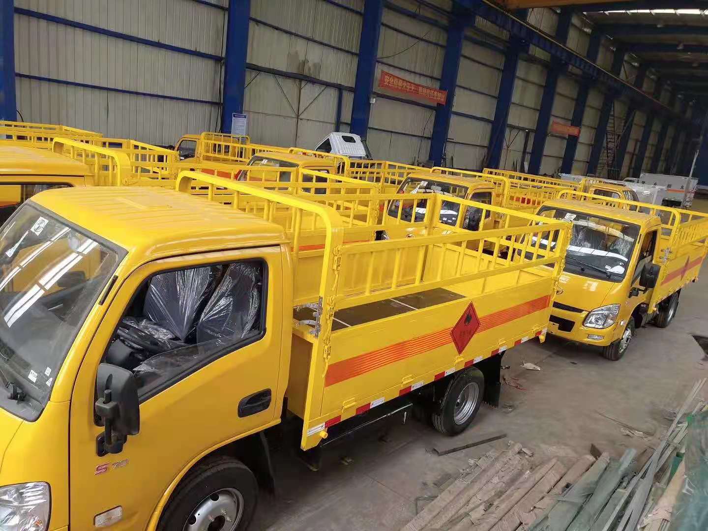 .躍進(jìn)小福星汽油3.3米1.3噸氣瓶運(yùn)輸車上裝配置:廂體為欄板或倉(cāng)欄式結(jié)構(gòu),欄板外飾冷軋鋼板,廂體兩側(cè)分為兩段活動(dòng)式結(jié)構(gòu)上下翻轉(zhuǎn),頂部高欄左右開(kāi)啟,后部設(shè)置欄板上下開(kāi)啟,可選裝液壓尾板。底板采用3mm厚優(yōu)質(zhì)碳鋼防滑板,可選裝鋪設(shè)膠皮,底板邊緣間斷式焊接固定臥環(huán),方便固定捆綁氣瓶,操作方便。欄板內(nèi)側(cè)可選裝捆綁帶,適用于各種氣罐、氣瓶直立運(yùn)輸,煤氣罐兩層運(yùn)輸。底板橫梁加密,為避免地板變形焊接間距不大于350mm。廂體張貼危險(xiǎn)品標(biāo)牌、易燃?xì)怏w標(biāo)牌、橙色反光帶、三角危險(xiǎn)品吸頂燈、導(dǎo)靜電托地帶。其它按氣瓶運(yùn)輸車標(biāo)配生產(chǎn)。