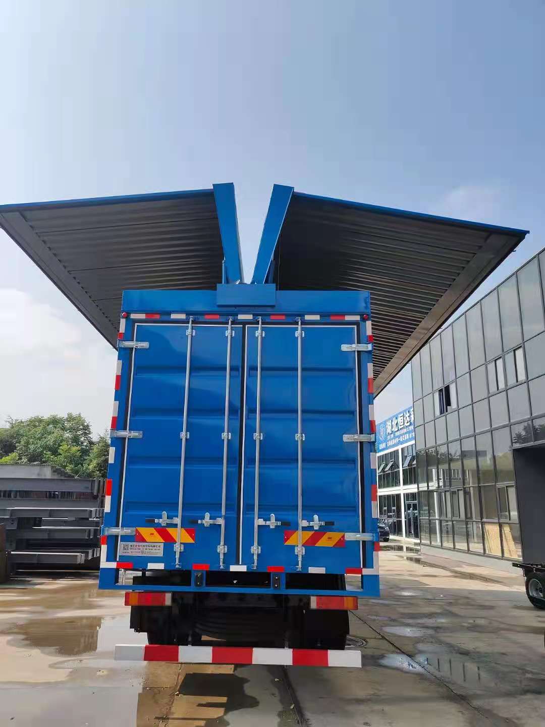 翼開啟廂式車廂體矩型方管框架結構,鋁型材邊框、外飾鋁波紋板,內飾鍍鋅平